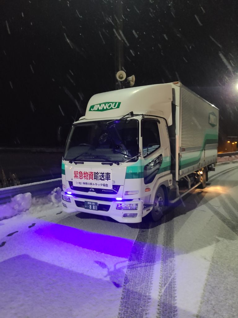 2024-01-16 令和6年度能登半島地震 緊急支援物資輸送 1月11日に神奈川県トラック協会の要請を受け、整備課が弊社の車両をスタッドレスタイヤへと交換し、1月12日に緊急消防隊神奈川県大隊とともに物流部の職員1名が神奈川県消防学校を出発、石川県鳳珠郡能登町への緊急支援物資輸送を行いました。 BACK